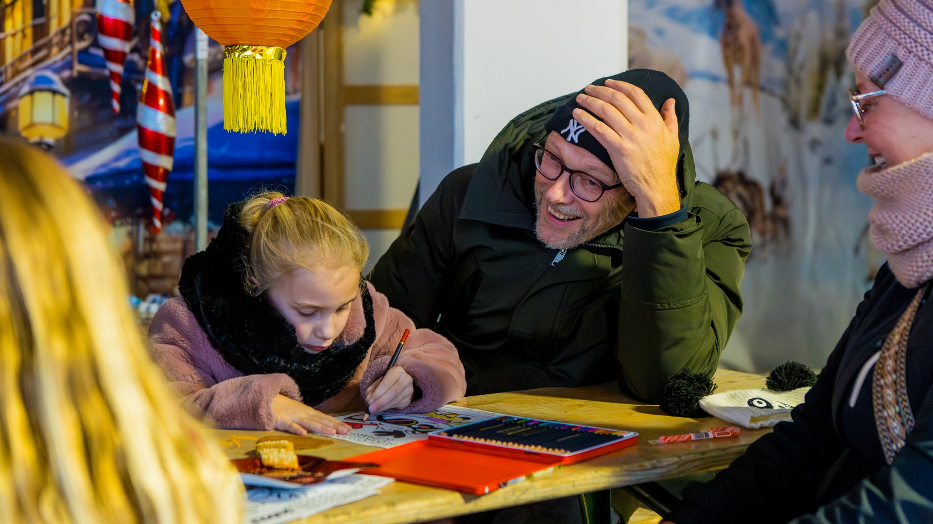 De kerstman, kerstvrouw en hun elfjes zijn regelmatig aanwezig. Kinderen kunnen meedoen aan een kleurplaatwedstrijd en op de foto met de kerstfamilie.