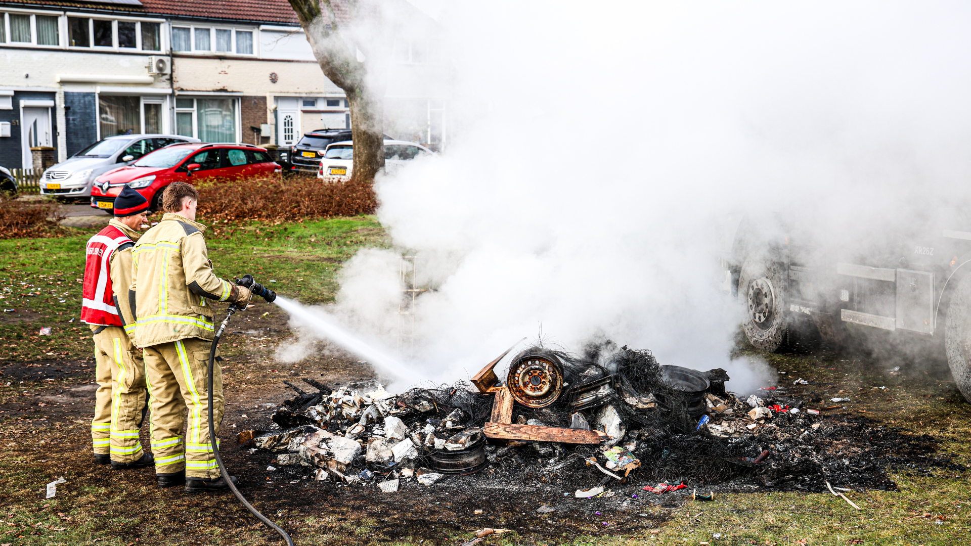 De brandweer is op oudejaarsdag rond 06.00 uur opgeroepen voor een autobrand aan de Horizon in Klazienaveen. Een bestelbus en een personenauto stonden in brand en raakten volledig verwoest. Een buurtbewoner probeerde nog te blussen, maar dat mocht niet baten. De brand zou zijn begonnen bij de bestelbus en is overgeslagen naar de auto. De politie houdt rekening met brandstichting.