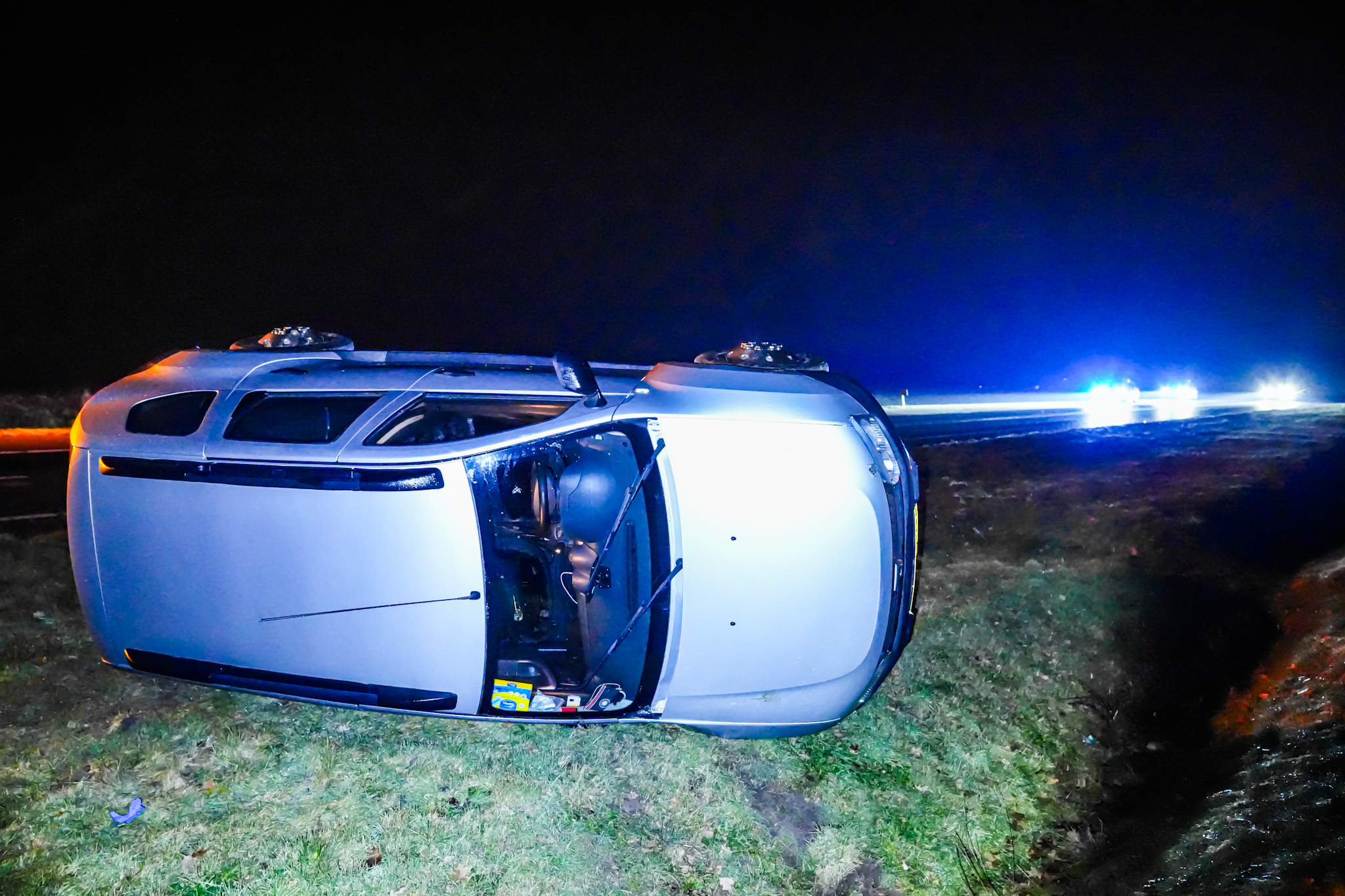 Omstanders en ambulancepersoneel, die als eerste ter plaatse waren, hielpen de bestuurder uit het voertuig. De bestuurder is voor controle overgebracht naar het ziekenhuis. Het wegdek was op dat moment spiegelglad.