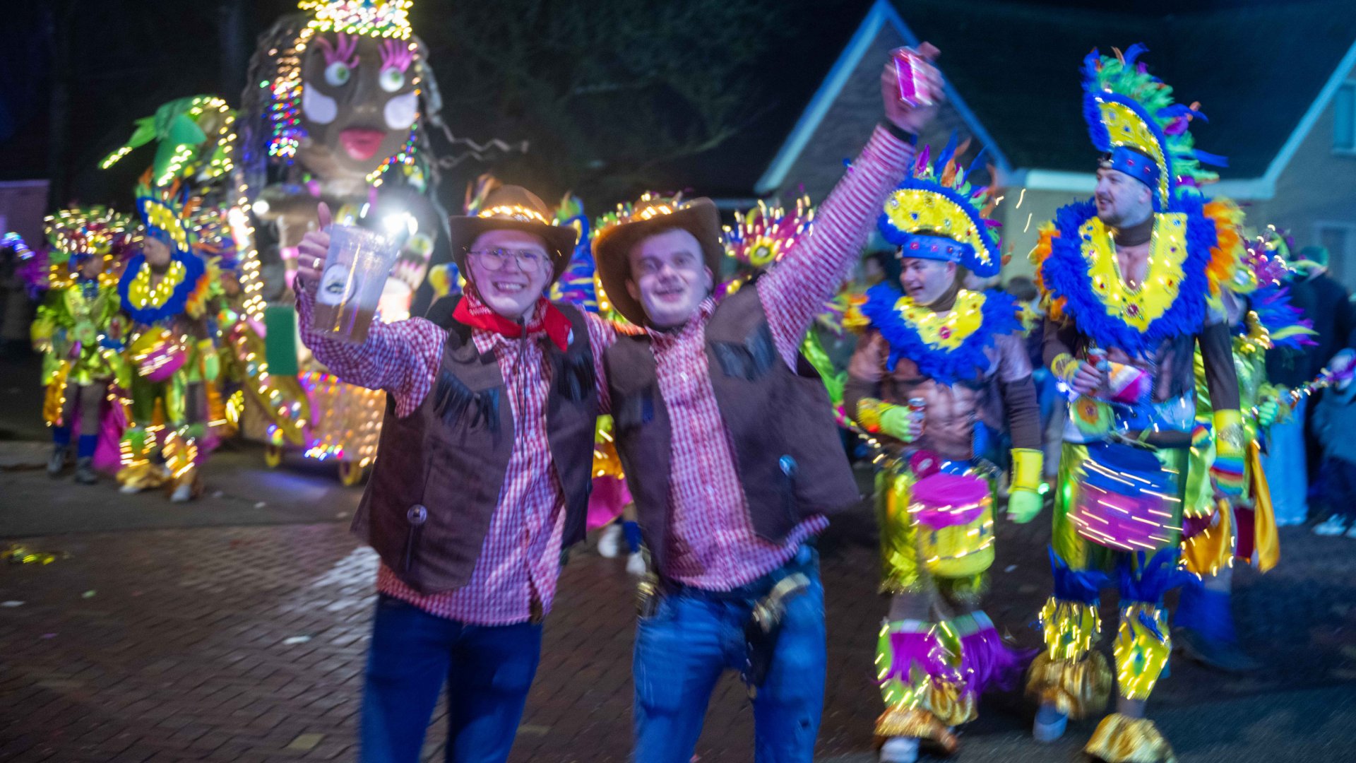 De organisatie kijkt terug op een geslaagde avond. Na afloop van de optocht ging het feest verder in een feesttent in het dorp.