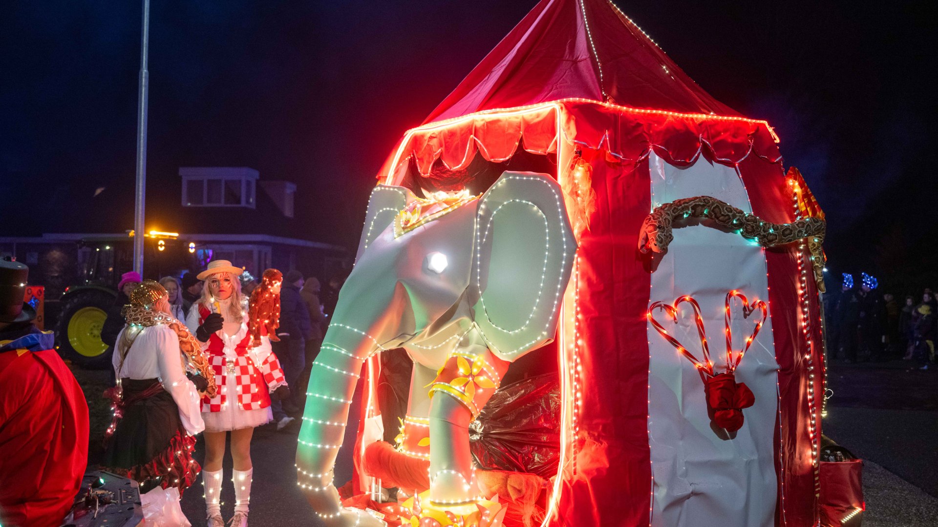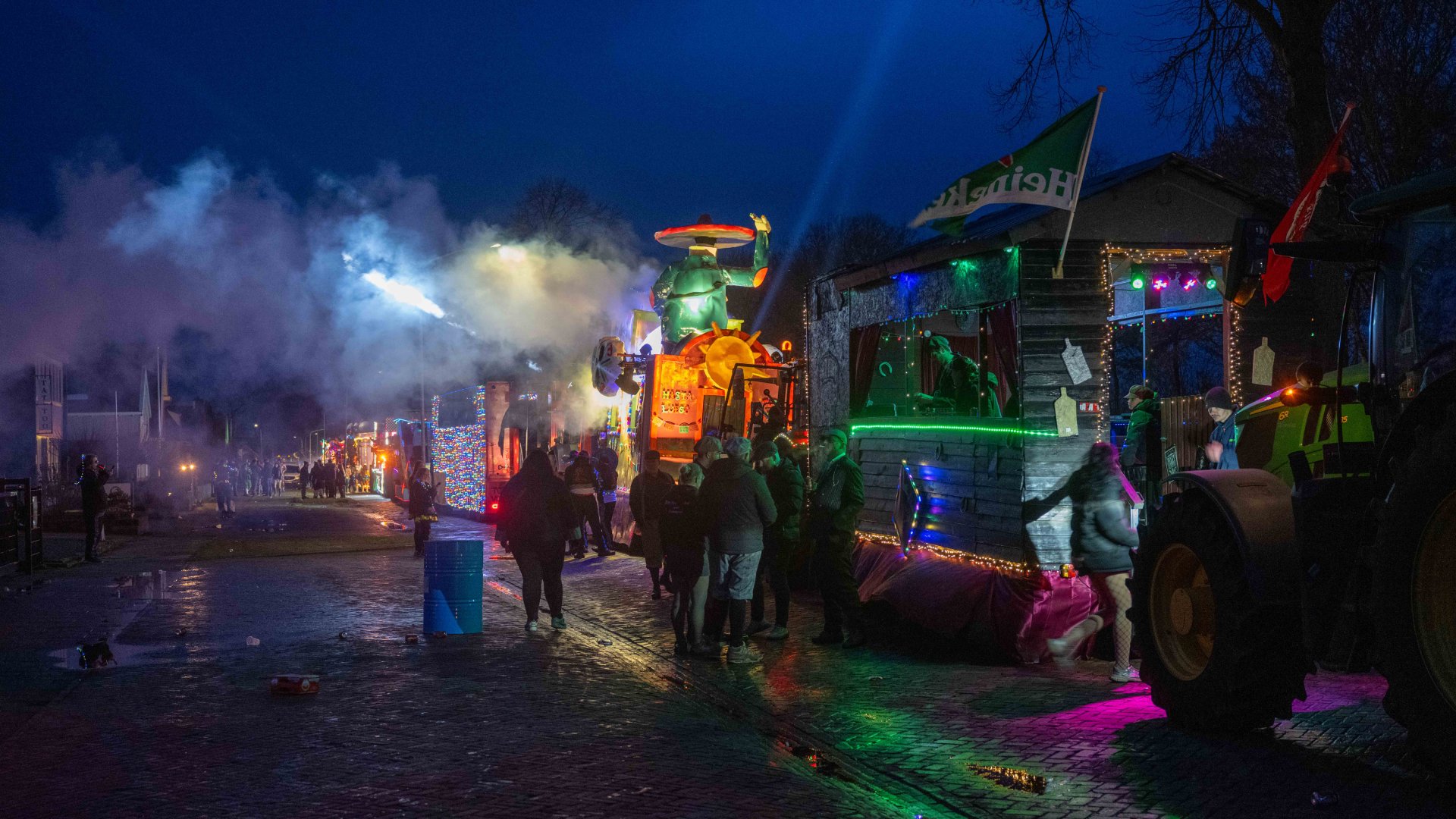 Vrijdagavond is het carnaval begonnen in Kainbongelstad. De verlichte optocht met 70 praalwagens en 23 loopgroepen trok door Emmer-Compascuum.