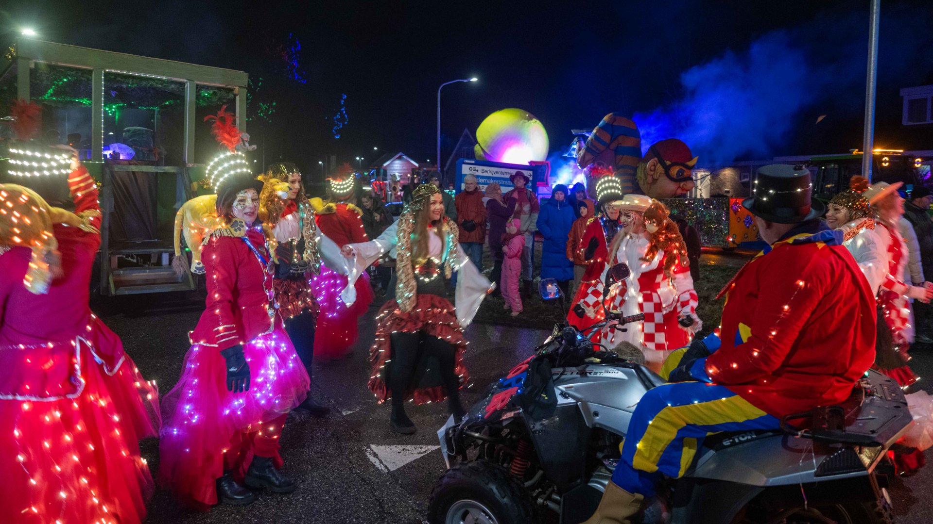 Langs de route stonden duizenden bezoekers. Zij kwamen kijken naar de versierde en verlichte wagens. Tijdens de optocht bleef het droog en het was koud. Verschillende groepen kozen voor actuele thema’s, zoals de wolf, de Olympische Spelen en Valentijnsdag.