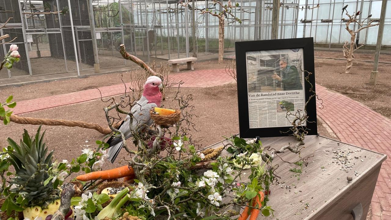 Het is een gekwetter van jewelste in de diverse kooien van de World of Birds Foundation in Erica. Wellicht dat de dieren zelf ook enigszins van slag zijn. Binnen een van de kooien van de vogelopvang, met de grootste collectie aan papegaaiachtigen in Nederland, staat namelijk een kist met daarin het lichaam van Ruud van Schaik.