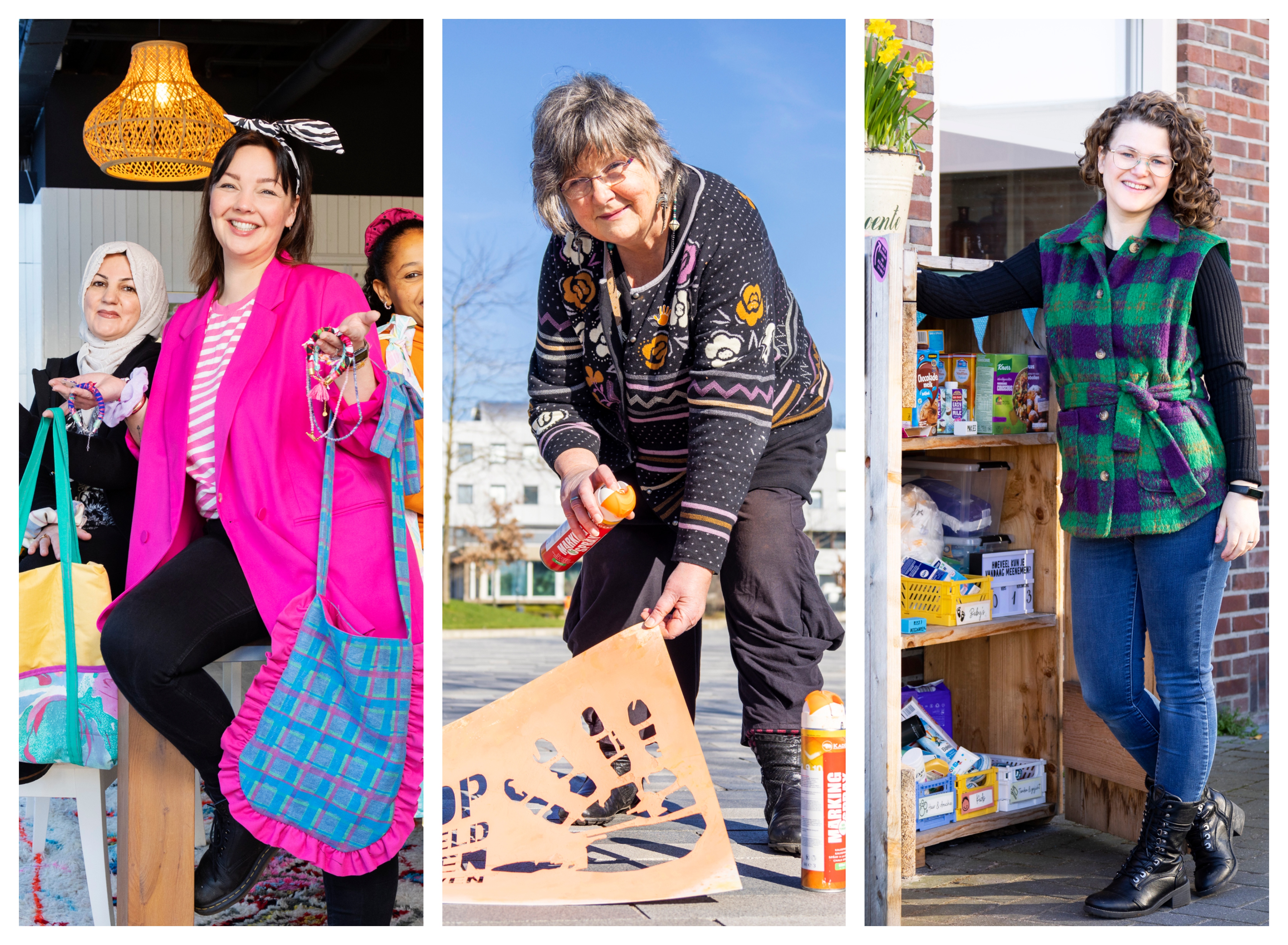 Maartje van Wagensveld van Atelier Artisana biedt vrouwen met een vluchtelingen- of migratieachtergrond een plek waar zij vaardigheden leren, sociale contacten opbouwen en zich kunnen ontplooien. Haar atelier zit midden in het centrum van Emmen en ziet er kleurrijk uit. De muren hangen vol met gekleurde tasjes en sieraden. Al dan niet zelf gemaakt of fairtrade ingekocht. In de hoek een grote tafel met naaimachines erop.