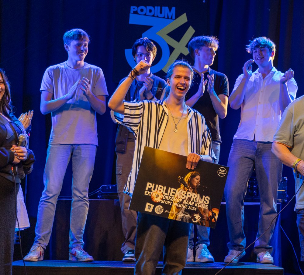 Stichting Kunst & Cultuur en The Bake Shop ondersteunen al jaren jonge opkomende artiesten in Drenthe met verschillende talentontwikkelingstrajecten, waaronder Popsport. De finale in Podium34 was het hoogtepunt van weken van voorbereiding en coaching voor de zeven deelnemende acts.