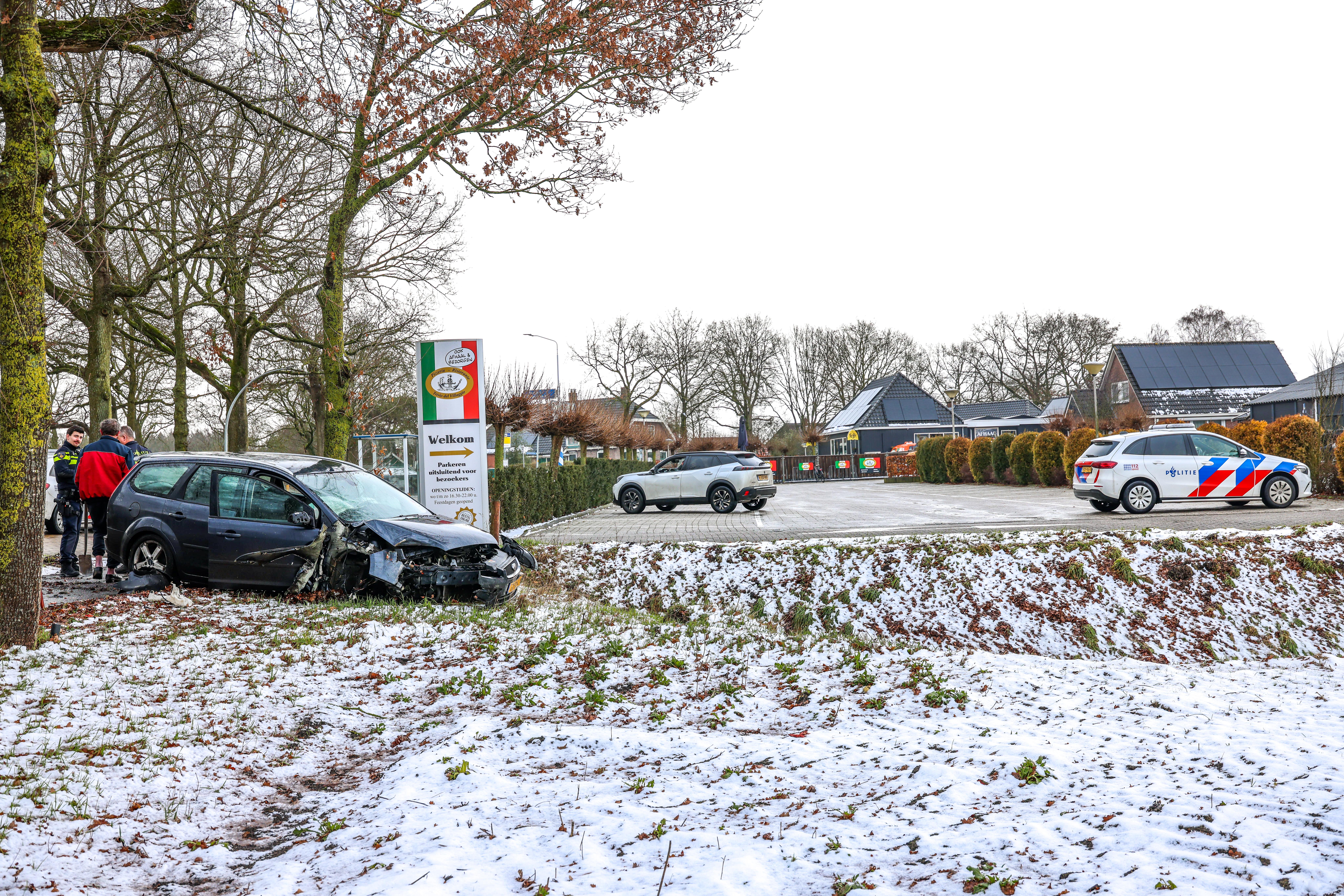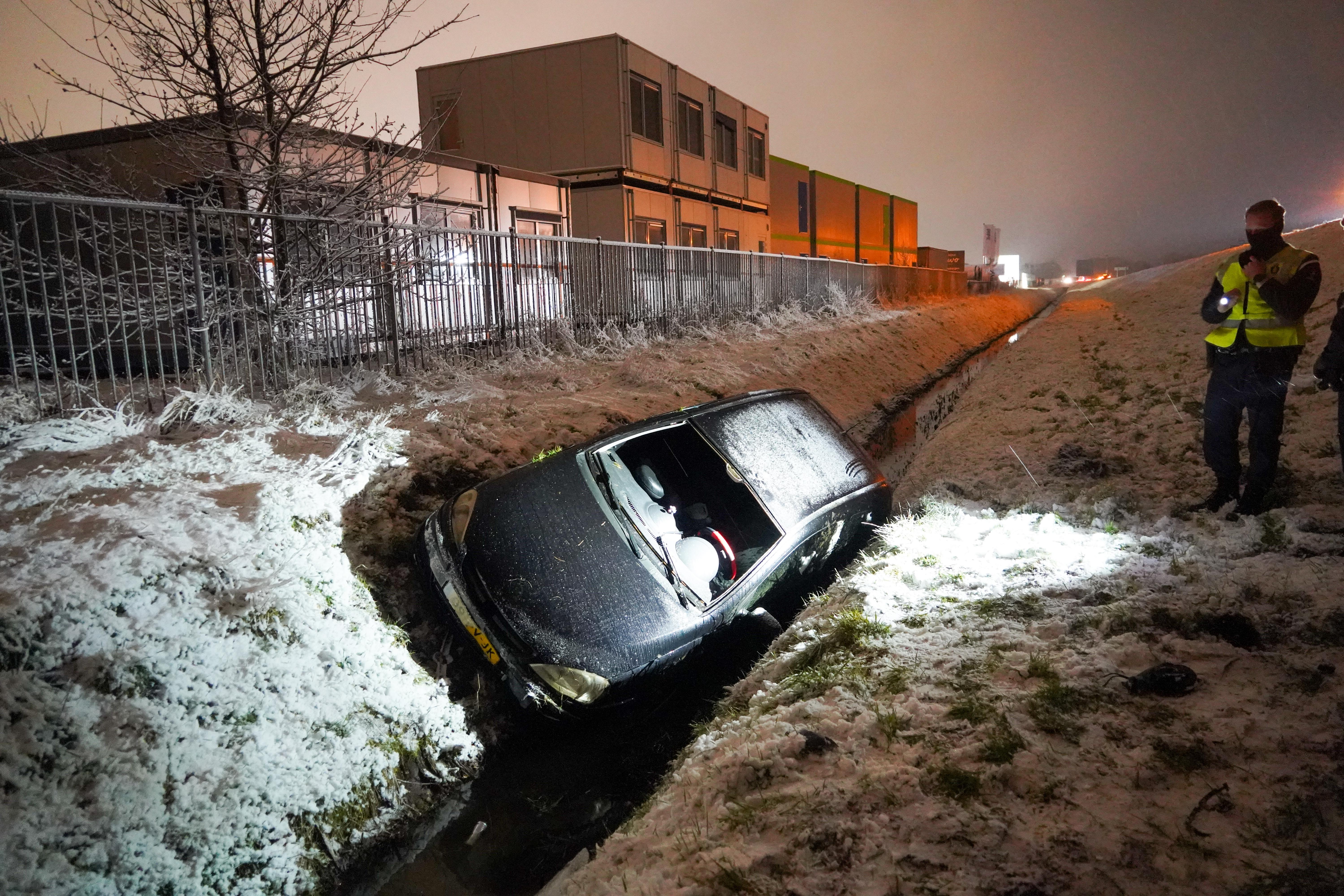 Auto door gladheid in sloot langs N34 bij Coevorden