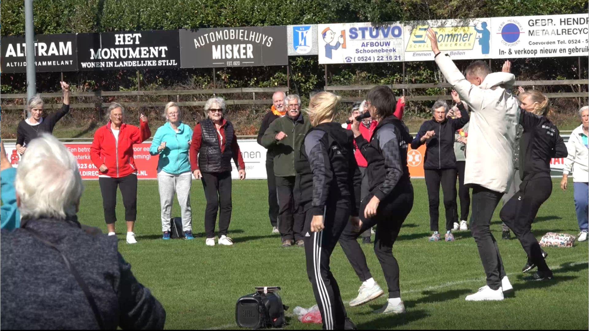 Druk is het op het sportveld en in de gymzaal van Veenoord. Ruim honderdvijftig senioren kwamen op donderdag 25 september samen om te bewegen. Van dansen tot drummen en van tennis tot voetballen. Het programma is onderdeel van de Nationale Sportweek.